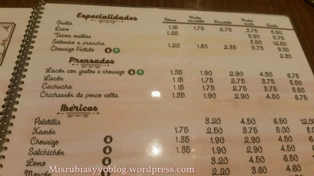 Portada de su carta Pedimos media ración de picada de oreja acompañada de una jarra de vino blanco del ribeiro.