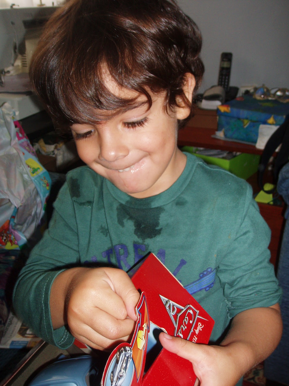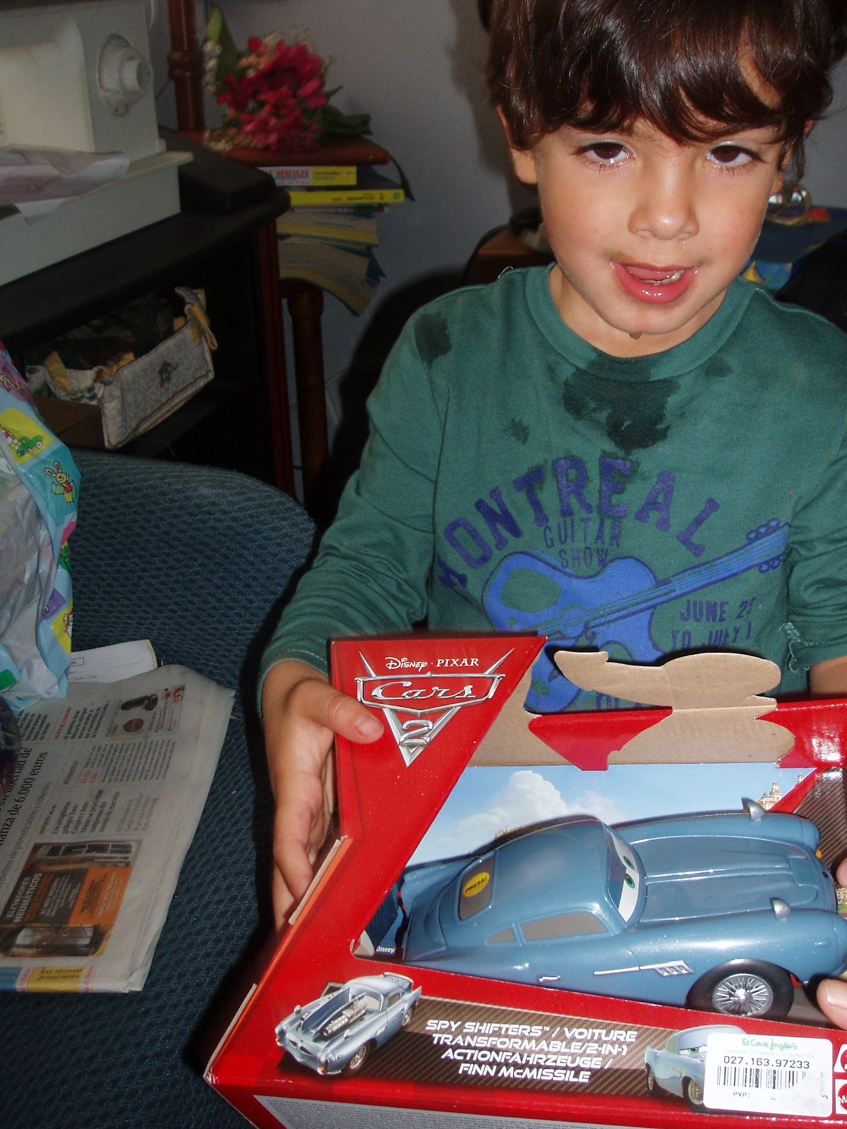 El coche que le regalo su prima Anais, le encanta, al despertarse lo primero que hace es ir a buscarlo