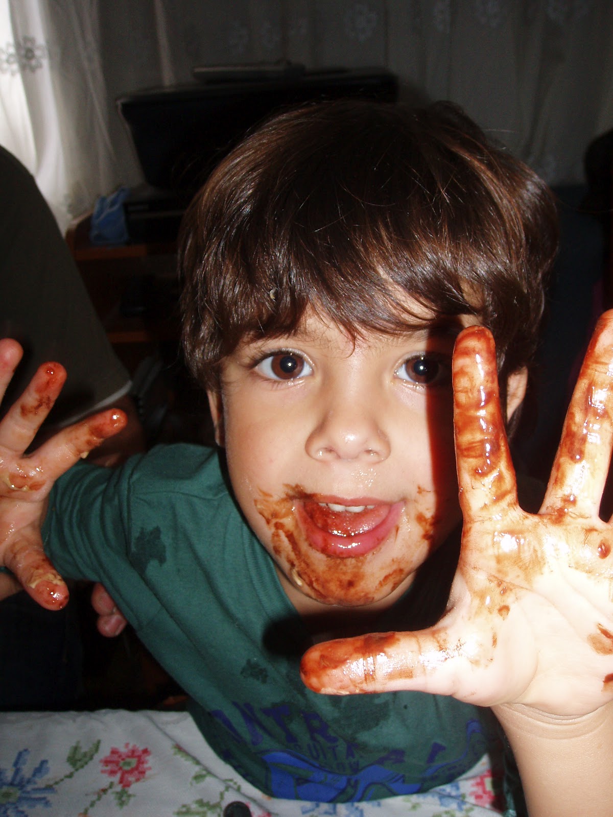 Ayer fue su cumpleaños, 3 añitos, lo celebramos el domingo en casa de la Bis-Abuela, se lo paso bien, dejo la camisa toda sucia, ayyyy!!!!como va creciendo, a ver que novedades me da este año...