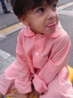 Hoy cogió un berrinche al salir, quería que le llevase en el colo, jolines, con lo que pesa, claro ve algunos niños que sus padres lo aúpan, pero hasta el coche, y él quería también, y terco se puso, que al final cedí, ya en los soportales le baje, y empezó a patalear y quedarse en el suelo. Madres que pasaban por ahí, me decía, que le dejase que era peor, que ya vendría, me aleje con seguridad y no venía, ayyy, no sabía que hacer, luego paso mi vecino, me miro mal, y al final, lo cogí otra vez en el colo, gano Noel, otra vez, y luego al llegar a casa, caraiss, de repente, le dio el subidón.