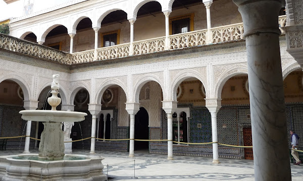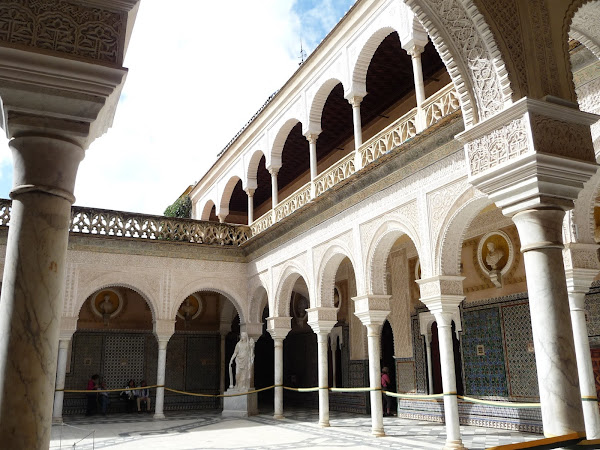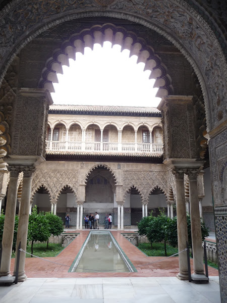 Dia 3. El tercer día hicimos lo mismo con el Alcázar, esta vez las entradas sí que las teníamos compradas y sacadas así que sólo tuvimos que colocarnos en la puerta y esperar a que abrieran. Tenéis que ir con tiempo porque estuvimos dentro casi 3 horas! Tiene mucho que ver y unos jardines preciosos. De ahí nos fuimos a visitar la Casa de Pilatos, ahí por lo menos las nubes nos dieron tregua y salió un poquito el sol.