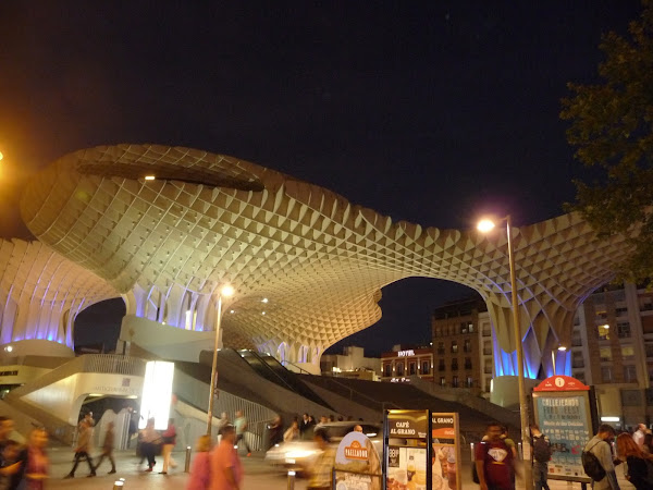 Tras esto, comida de tapas por distintos barecitos de la zona y con un riquísimo salmorejo en el cuerpo nos fuimos hacia el Mirador de Las Setas o también llamado Metropol Parasol. El resto de la tarde lo dedicamos a pasear tranquilamente y a buscar sitio para cenar ya que era nuestro último dia en tierras sevillanas. Tras la cena pasamos por una teteria y pedimos un té y dulces típicos (me pirran!!!!).