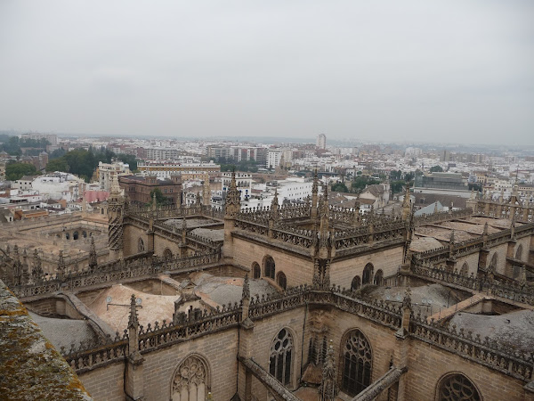 Dia 2. Lo primero que hicimos fué irnos a ver la Catedral. Reservamos las entradas con tiempo por internet. Os lo recomiendo, ya que sólo tuvimos que esperar unos minutos en una cola para entrar, si no las has reservado tienes que hacer una cola distinta, la cual da la vuelta a la catedral. Me impactó mucho la catedral, es muy muy grande y está perfectamente conservada. Y después está La Giralda, IMPRESIONANTE. Es preciosa, desde fuera ya se nota la diferencia con la catedral, ya que esta torre es de origen mozárabe. Las vistas son preciosas, puedes ver toda la ciudad desde los cuatro lados de la torre. A nosotros nos salió un dia muy nublado como podéis apreciar en las fotos pero aún así me pareció una ciudad preciosa.