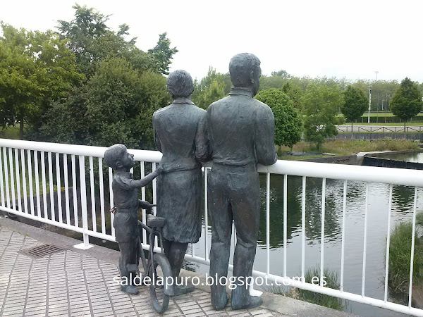 Termino con una preciosa escultura de Manuel García Linares.Está en la rotonda de la Guía, donde era el merendero El Puentín. La escena es muy bonita; una mamá, un papá y su niño, que lleva una bici, se apoyan en una barandilla. El niño y el padre miran al frente y la madre mira de reojo asu hijo, que llama su atención tirando del vestido de su progenitora. Se instaló en 1999, pero a veces siento que llevan ahí toda la vida.
