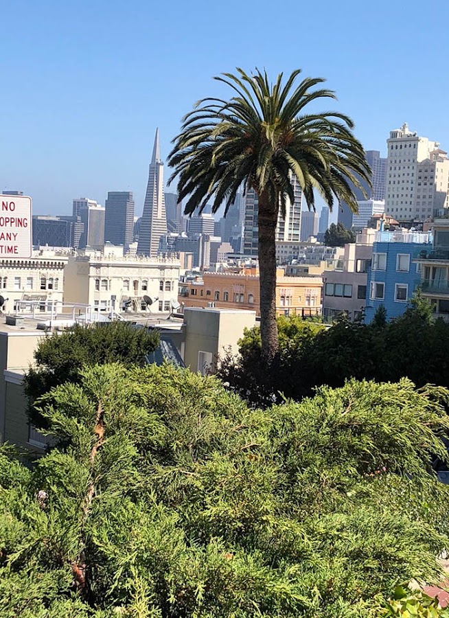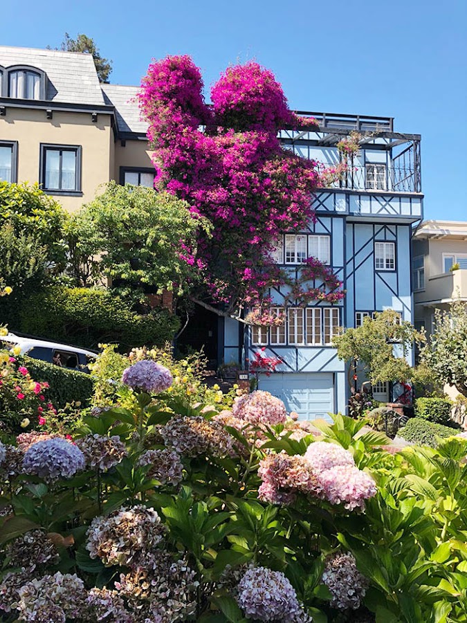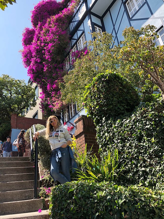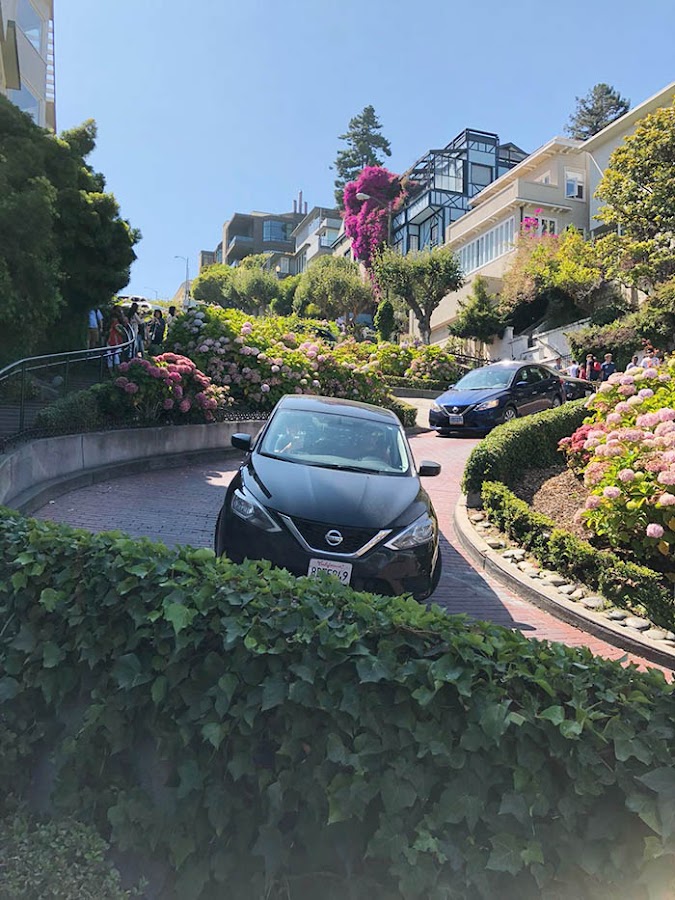 Continuamos nuestra ruta hacia la calle Lombard, seguro que a todos os suena esa típica calle de S.F que en tantas y tantas películas ha salido. Vista al natural, lo cierto es que resulta muy pintoresca con las casas de colores y tantas flores.