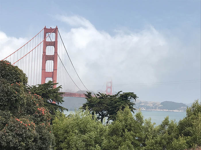 Primera y obligatoria parada, The Golden Gate Bridge que une la península de San Francisco por el norte con el sur del condado de Marín, cerca de Sausalito. Lo cierto es que el puente es impresionante, con sus 2737 metros en total y una altura de 227 m.