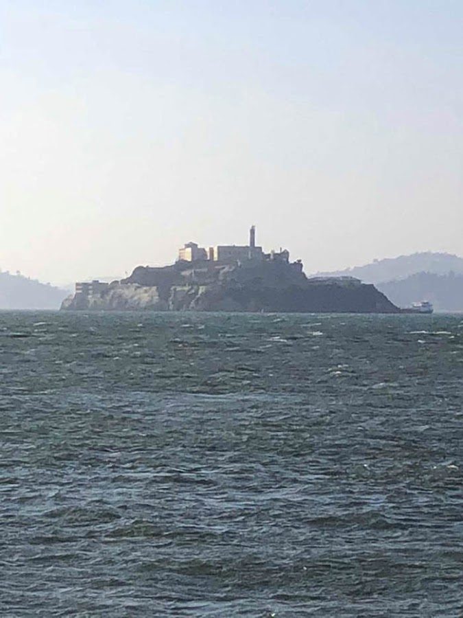 Desde el final del embarcadero se puede divisar también la isla / prisión de Alcatraz.