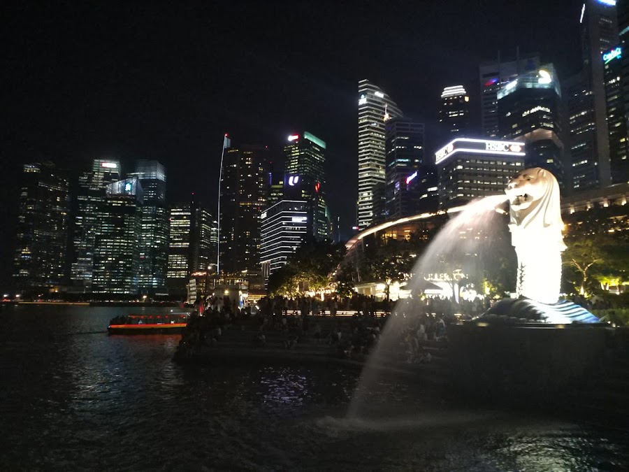 Merlion Park: una escultura medio pez, medio león que se encuentra frente al Marina Bay Sands. La verdad es que el skyline de esta zona es impresionante y de noche aún más. Recuerdo que nos quedábamos embobados mirando hacia arriba.