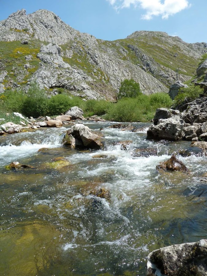 En cada corriente el fulgor vidrioso impide ver lo que se esconde bajos las aguas, pero que tu mente se imagina, mientras su eco rebota con las riberas tapizadas de impolutos musgos, hiervas y matorrales.