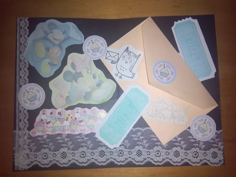 Ahora solo hay que buscar un diseño bonito, colocar todo con un poco de gracia y tenemos una tarjeta totalmente personalizada con regalito incluido (unos pendientes artesanales que he metido en el sobre, se cierra la tarjeta, se envía por correo y ¡listo!) ¿No me digas que no es una monada?