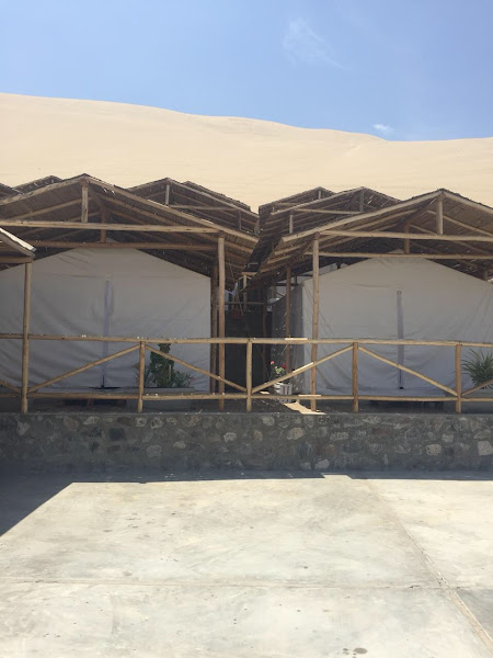 Es un hospedaje tipo campamento con carpas, baños comunes, zona de cocina compartida. Tiene piscina de tamaño mediano en una terraza y servicio de restaurante. Este campamento está ubicado en un sitio privilegiado para la vista, ya que desde allí observas una duna de arena en la parte posterior y estas a tres minutos del oasis.