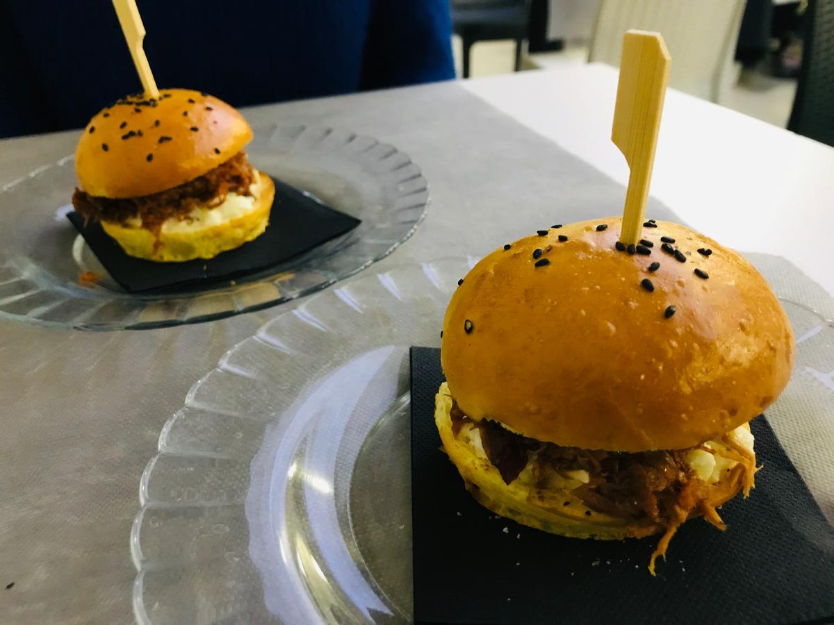 Bao de calamares: con el pan del bao casero, una combinación muy interesante y acompañado con mahonesa de kimchi.
