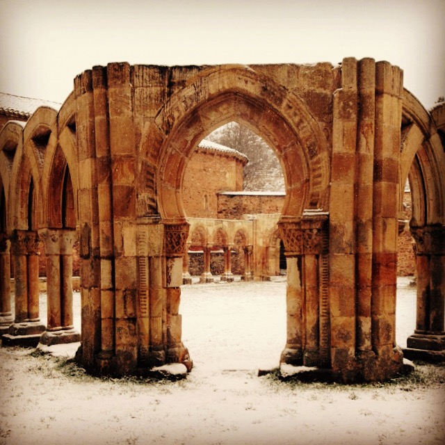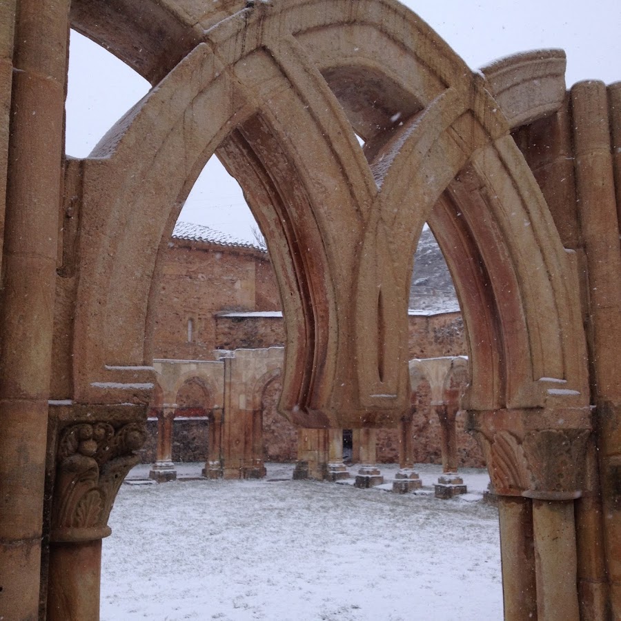 Tras unos muros se esconde el maravilloso claustro del monasterio de San Juan de Duero, decenas de arcos se mantienen en pie gracias a la maestría constructora de los canteros que los dotaron de una belleza única y serena, diferente en cada uno de sus lados, y que irremediablemente nos transportan a los lejanos países del Oriente Medio, quizá por influencia de las Cruzadas, ya que la orden que lo mandaron levantar eran los Hospitalarios de San Juan de Acre.