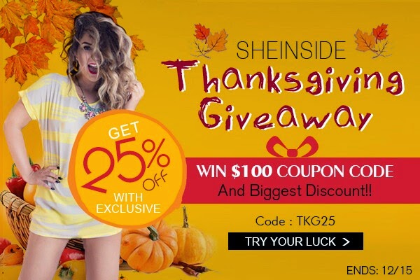 Pues bien, con motivo de la tradicional celebración del día de Acción de Gracias y aprovechando que esta semana el blog cumple tres añitos, quería "agradeceros" (y nunca mejor dicho) el apoyo y el cariño que me prestáis cada día, premiando de algún modo vuestra fidelidad y no se me ha ocurrido una mejor manera de hacerlo que brindándoos la oportunidad de ganar una tarjeta regalo por valor de 100 $ para gastar en Sheinside.