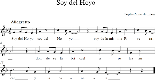 Soy del Hoyo. Partitura para flauta dulce. Del Cancionero del Reino de León. La podemos trabajar a partir de 3º de Primaria con los alumnos.