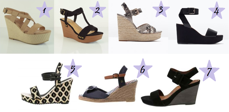 1.- Sandalia de cuña y plataforma cruzada de Marypaz 2.- Sandalia de cuña y plataforma en T de Marypaz 3.- Cuña print de Zara 4.- Cuña pulsera hebilla de Zara 5.- Sandalia de cuña de Anna Field para Zalando 6.- Sandalias de cuña navy/blanco de Anna Field para Zalando 7.- Sandalias con plataforma de Tamaris paa Zalando.