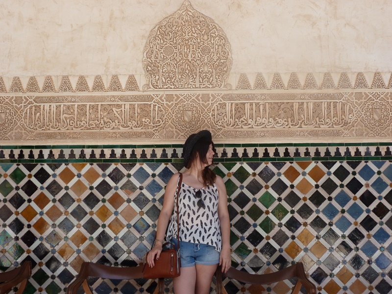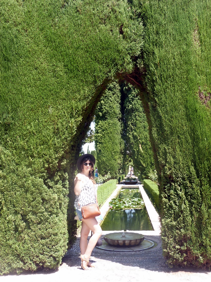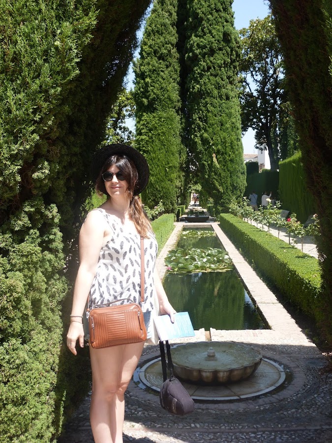 Quizás me he pasado con las fotos, pero en este caso el protagonista como habéis podido ver no es el look, de lo más cómodo y sencillo para la ocasión, pasamos mucha calor, andamos mucho y primaba el ir cómodas. Os he hecho un resumen más o menos de lo que es todo el recinto de la Alhambra, compuesta de varios palacios, jardines y demás, me encantó descubrir cada uno de sus rincones, así como las texturas de su construcción mosaicos coloridos, grabados en sus columnas y arquitectura en general, por un momento podías llegar a sentirte una princesa árabe en las Mil y Una Noches.