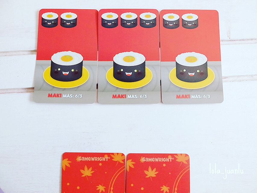 Ahora calculamos los puntos de las cartas con las que nos hemos quedado. Teniendo en cuenta que las recopilaciones que podemos hacer son Maki, Tempura, Sashimi, Gyoza, Nigiri, Wasabi o palillos.