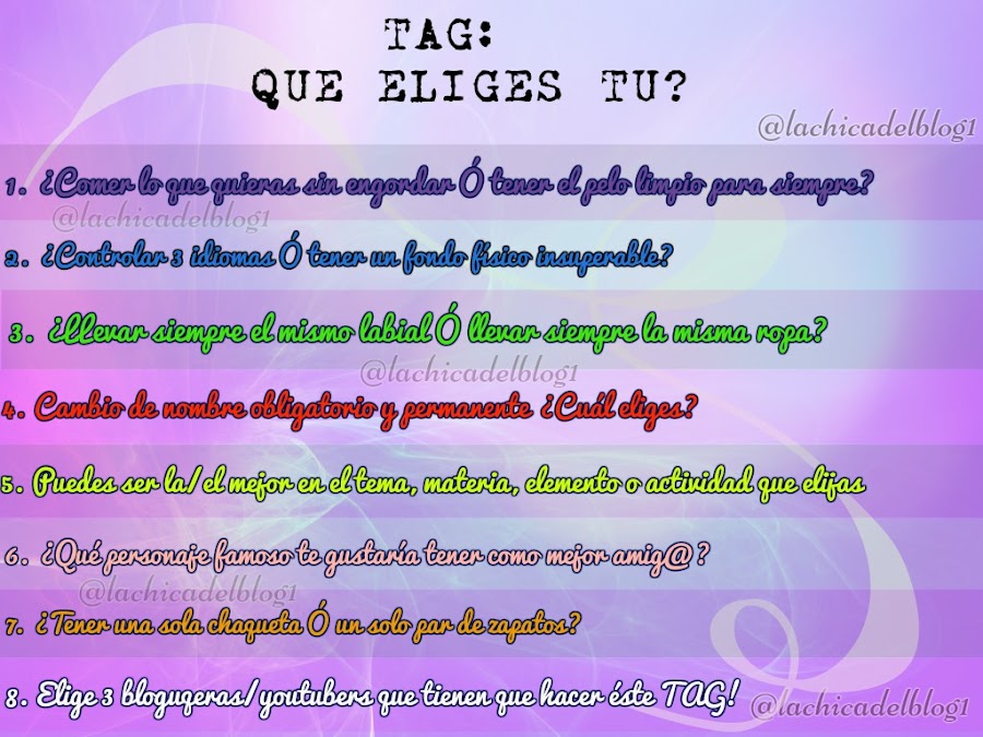 8. Elige a tres blogueras/ youtubers que tienen que hacer este tag.