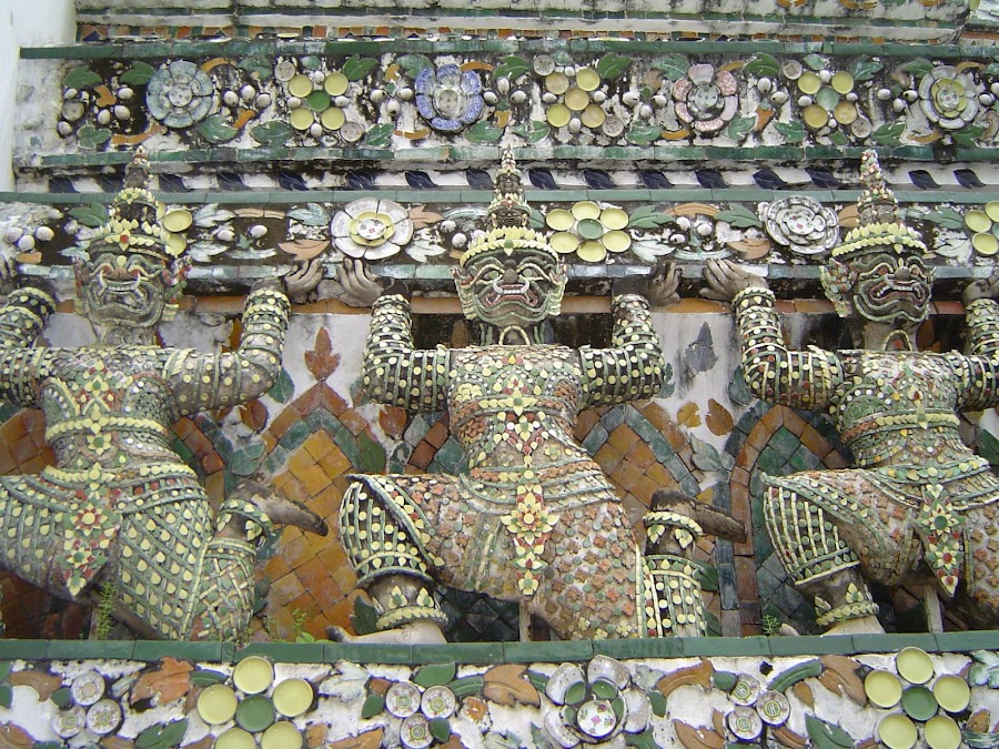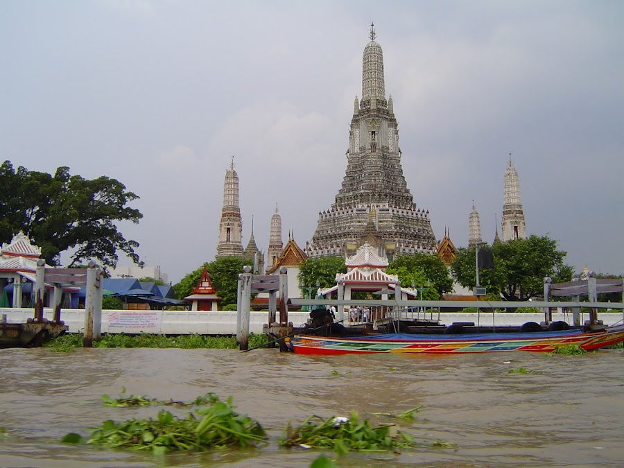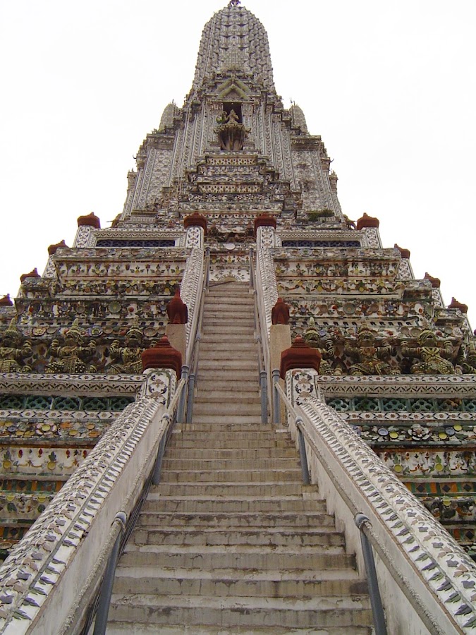 En el barrio de Thon Buri nos esperaba el Wat Arun o templo del Amanecer. Su prang principal mide 79 metros de altura y en el siglo XIX se le añadió la decoración a partir de piezas de porcelana. Representa el monte Meru.