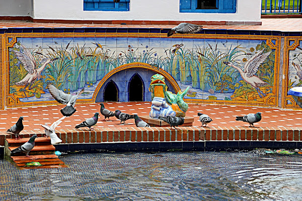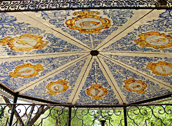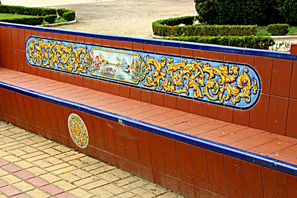 El mobiliario del parque está decorado con preciosos azulejos y cerámicas policromada