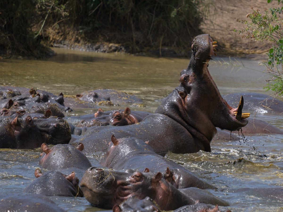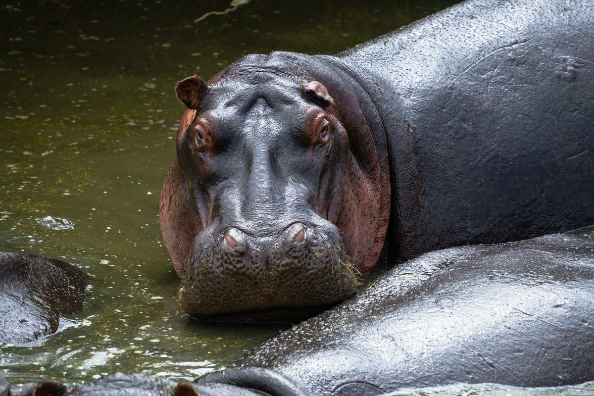 En esta fotografía podemos ver los grandes dientes de marfil que tiene el hipopótamo