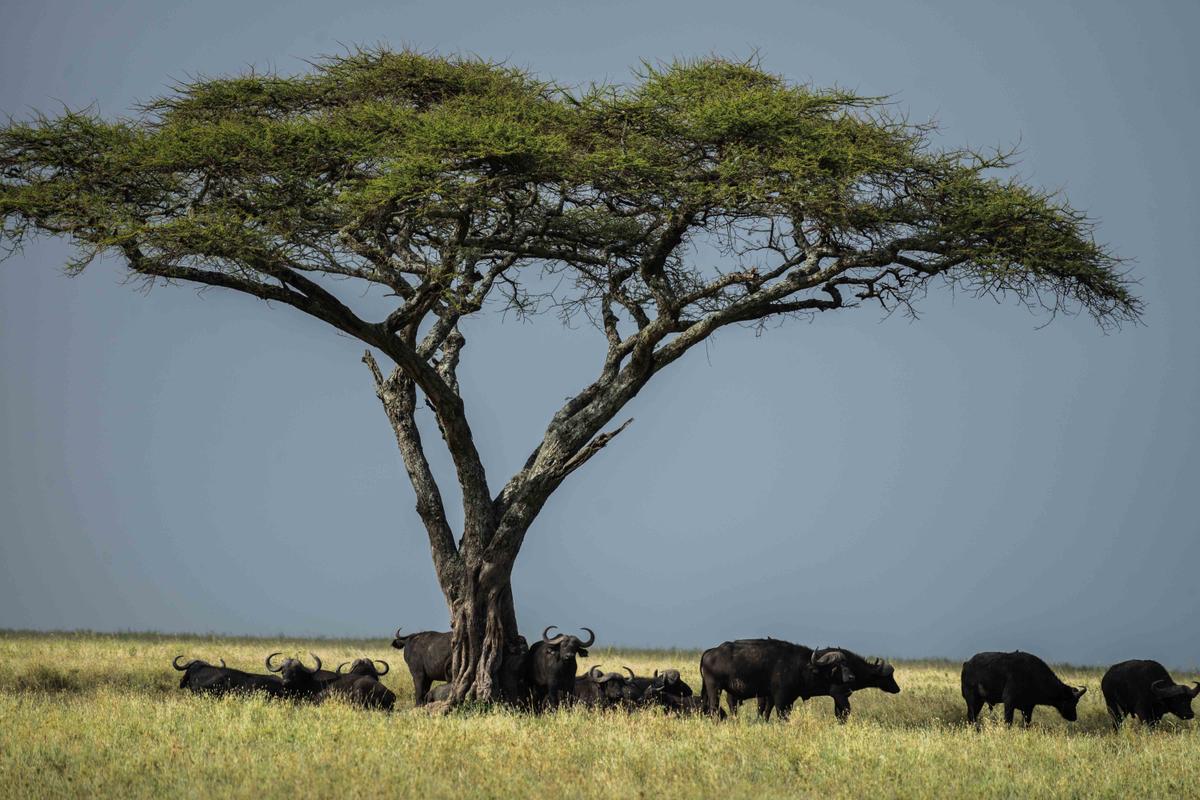 Todos conocemos este arbol, es todo un símbolo de la sabana africana y a la vez, su sombra, sirve de cobijo para muchos animales que huyen del calor sofocante, en este caso, una manada de búfalos africanos.