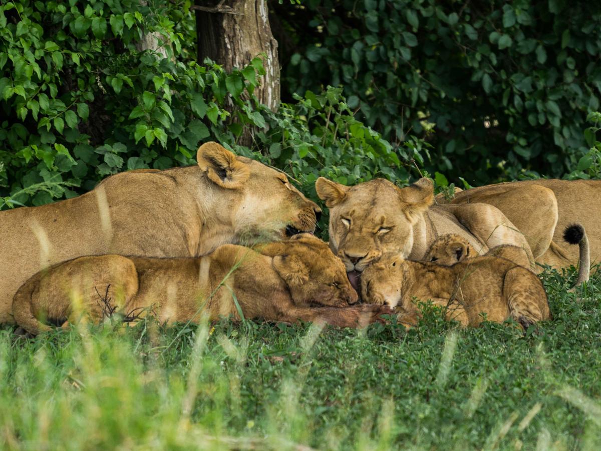 Esta familia de Leones se encontraba tomando la sombra debajo de un gran arbol. Esperando idilicamente a que sus presas, sedientas por el calor de la sabana en época seca, acudiesen a beber a una charca próxima.