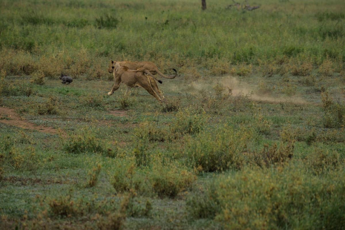 En esta secuencia de tres imagenes, podemos ver la escena de caza al completo. En este caso las leonas dieron caza a nada menos que tres jabalíes verrugosos o facóqueros. Eso sí, las presas eran crías.