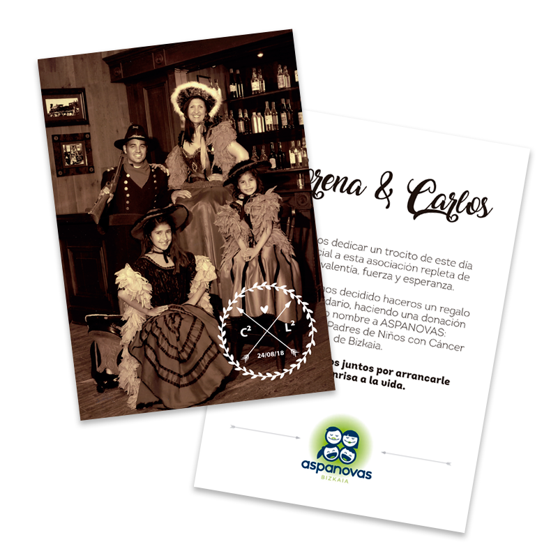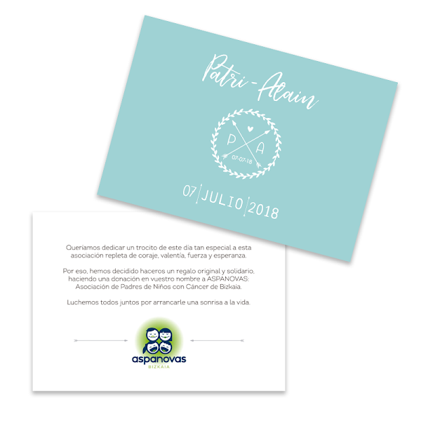 Recuerda que también hago la invitación de tu boda GRATIS si colaboras con la Asociación de Padres de Niños con Cáncer de Bizkaia :)