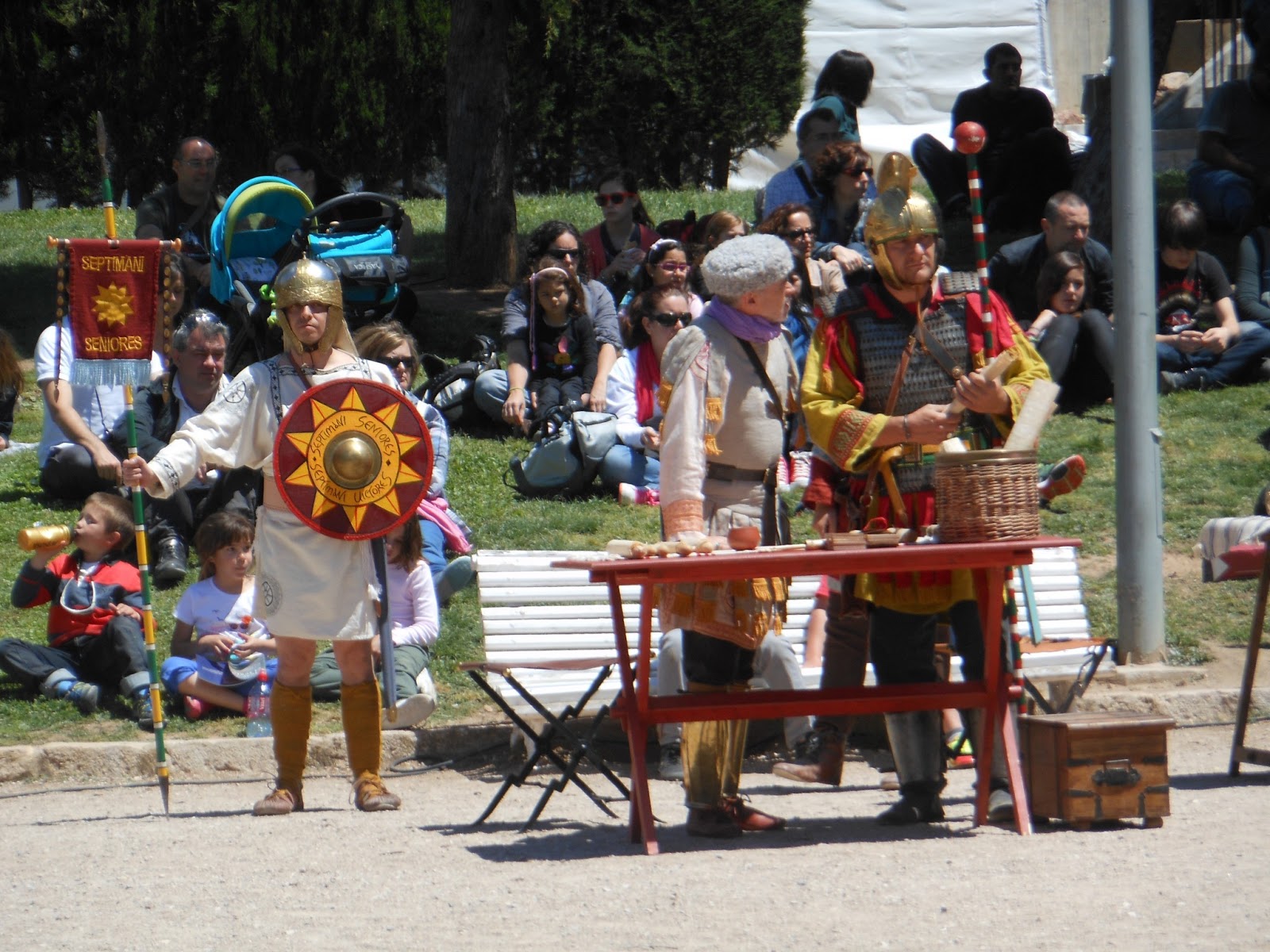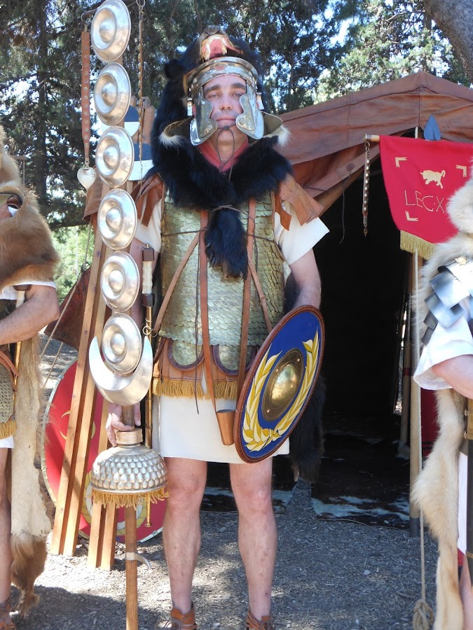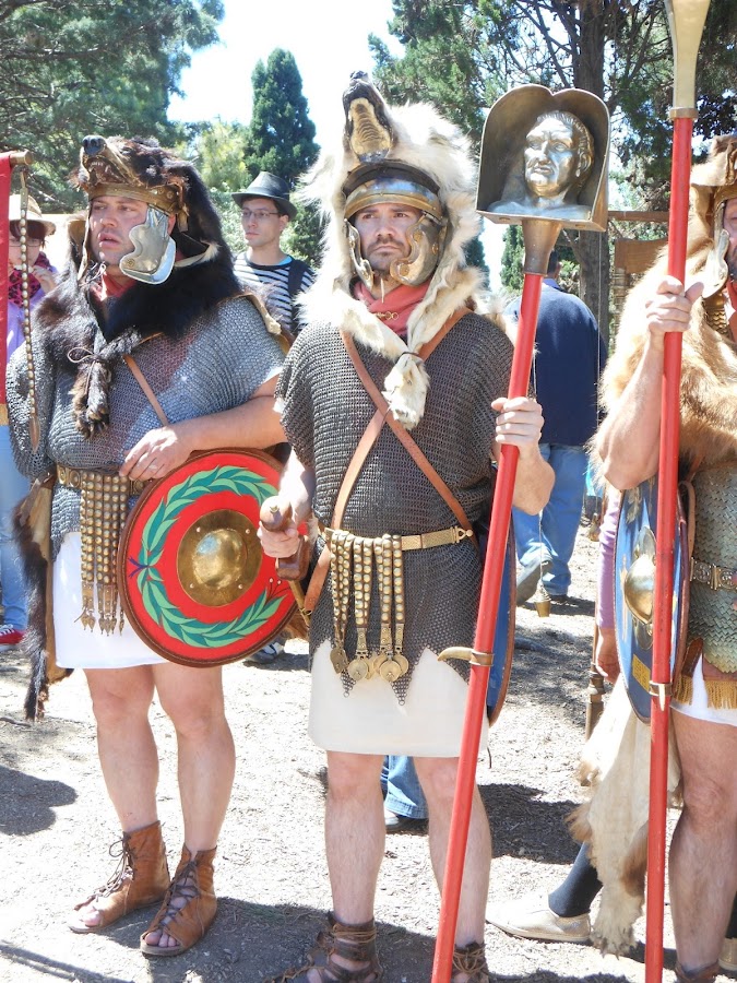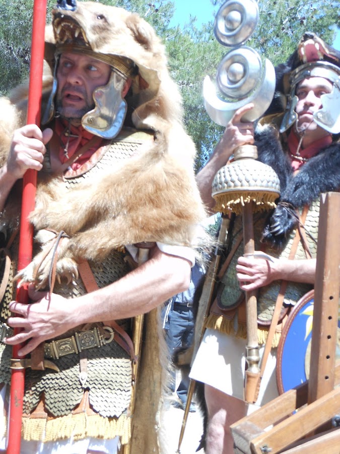 Podeis comprobar que estabamos muy bien protegidas, estos representantes que casi median 2 mts. eran los encargados de salvaguardar el honor de su legión y la peor humillación era perder en batalla sus insignias, la que lleva el busto del emperador (entonces, Julio César) iba recorriendo la tropa para infundir ánimos y recordarles por quien luchaban.