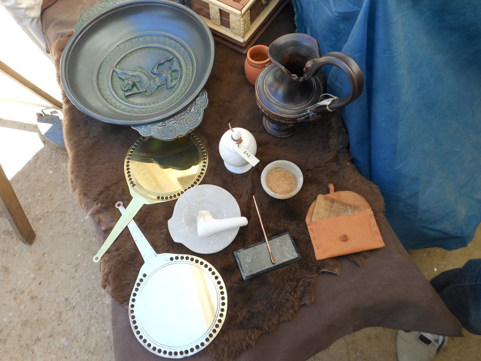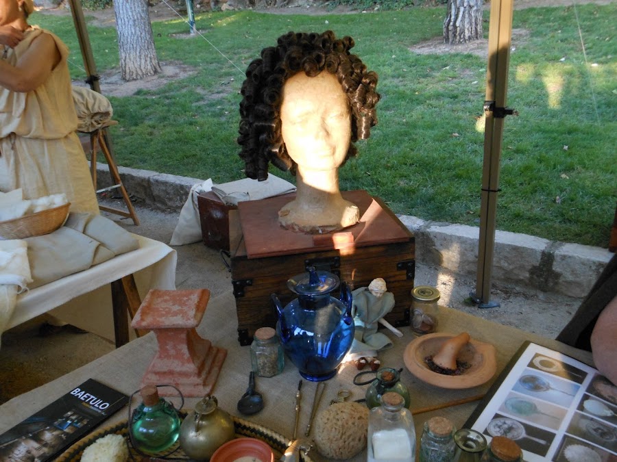Diversos objetos de la època, lo que más me gustó, fueron los espejos, que eran láminas de bronce tan pulidas, que! mirar como brillaban!para poderse ver reflejadas, en ellas.