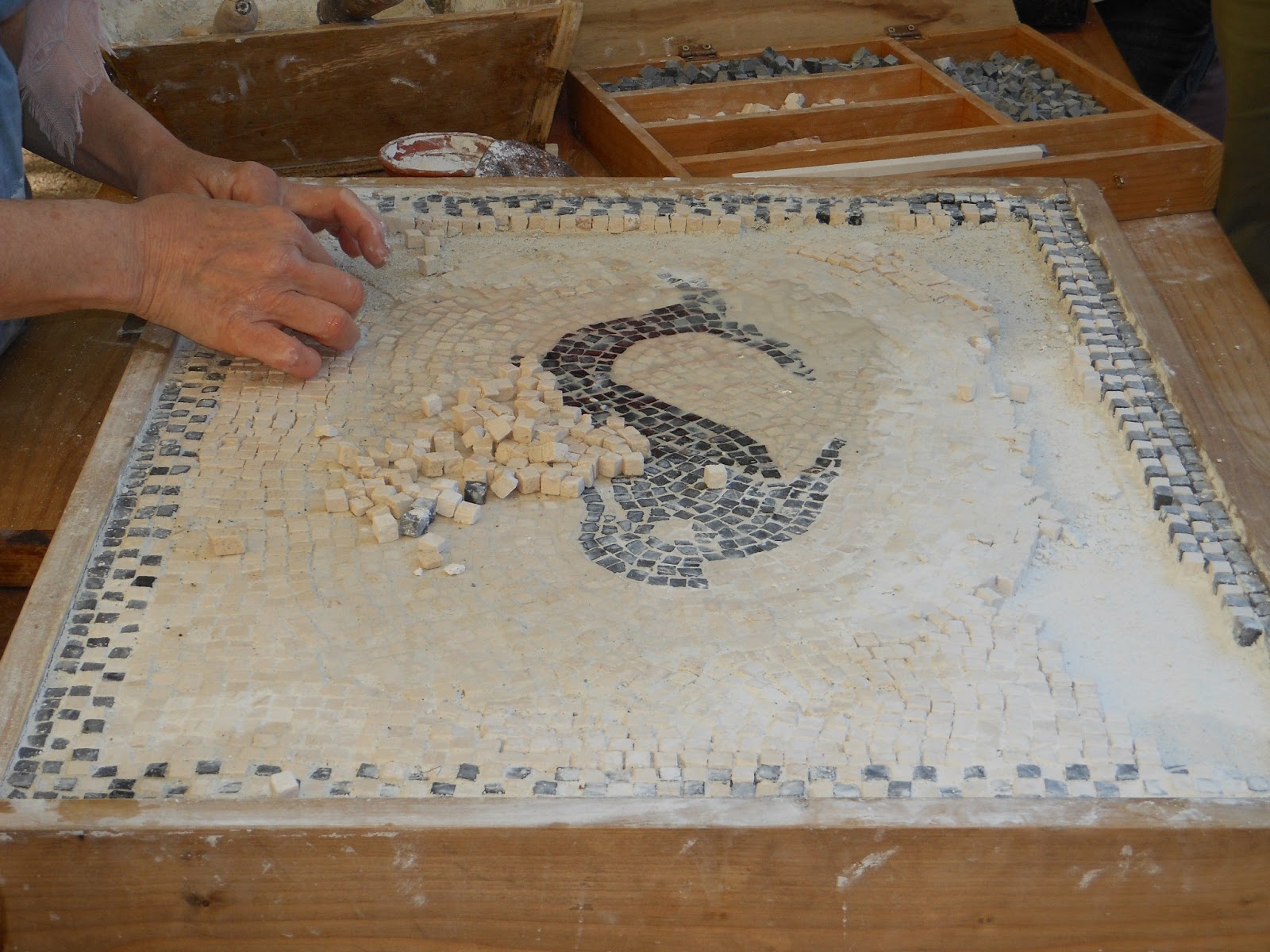 Esta señora muy amablemente nos iba indicando el proceso de la colocación de las teselas