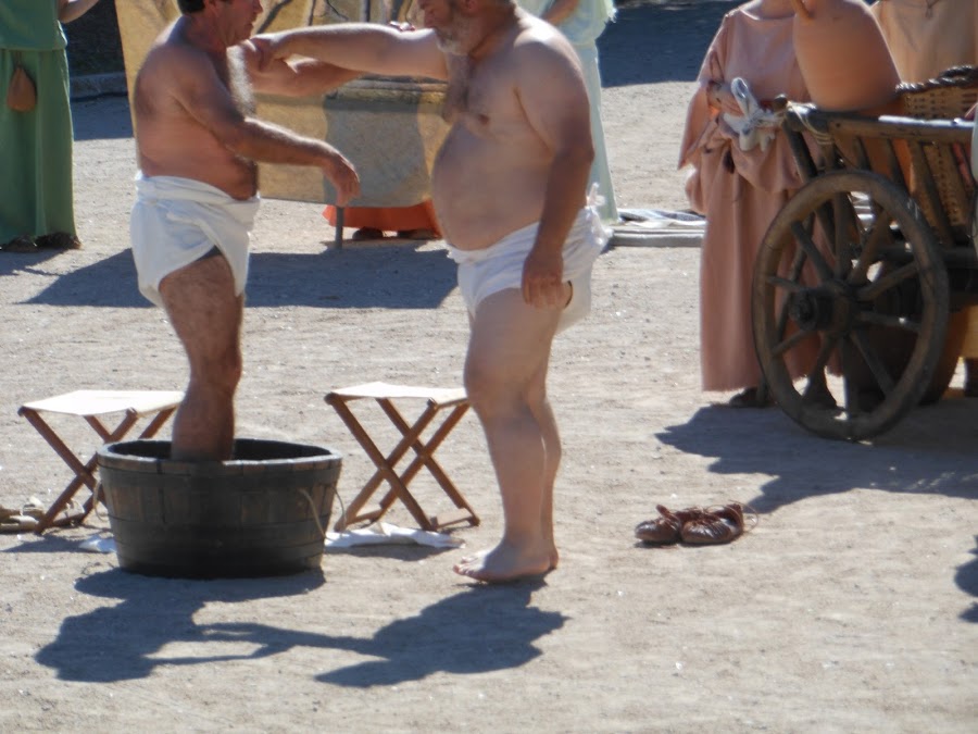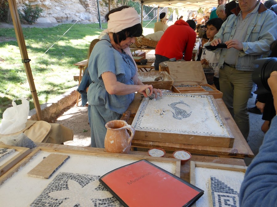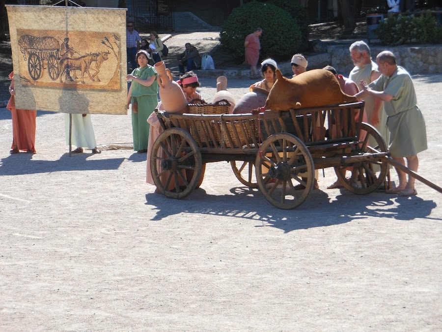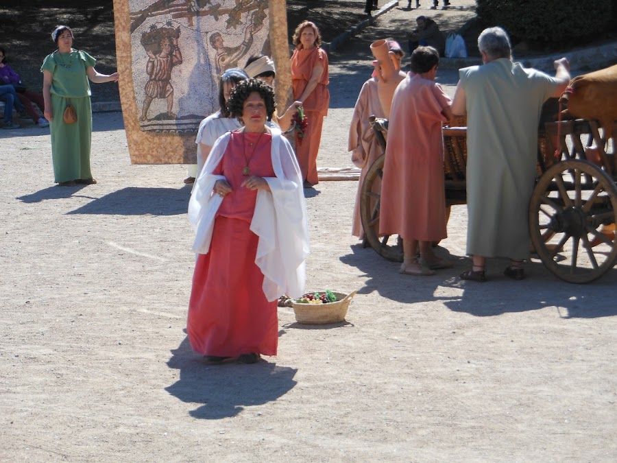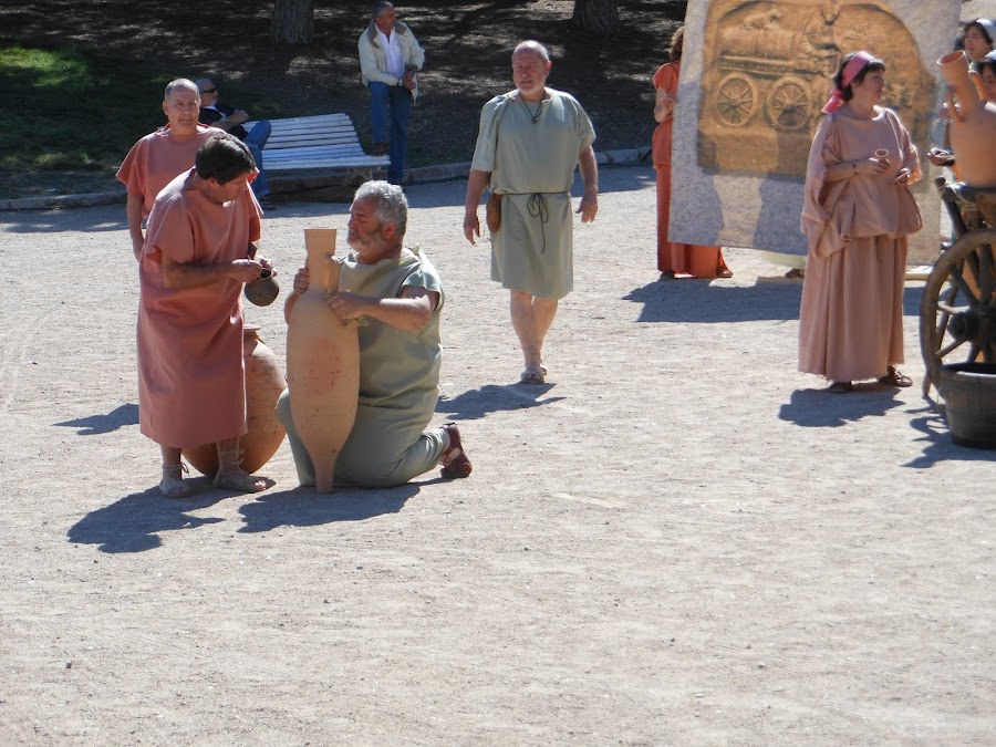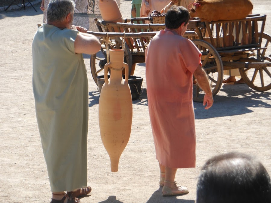 Las distintas fases de elaborar el vino, como forraban de pez las vasijas,sellando el tapón una vez llenas, como se confeccionaban las ánforas, en 3 fases, 1º la parte central, después le añadian la parte del cuello y las asas, finalizando con la base en forma de cono, para poder ser transportadas por mar, con mayor facilidad, situadas en los anforeros y que no se movieran, para evitar en lo posible los vaivenes del vino y que no se agriara en el viaje, de todas maneras el vino sabía diferente, debido a las especies que llevaba, nos dieron a degustar un vasito !yo lo encontré rico,rico!