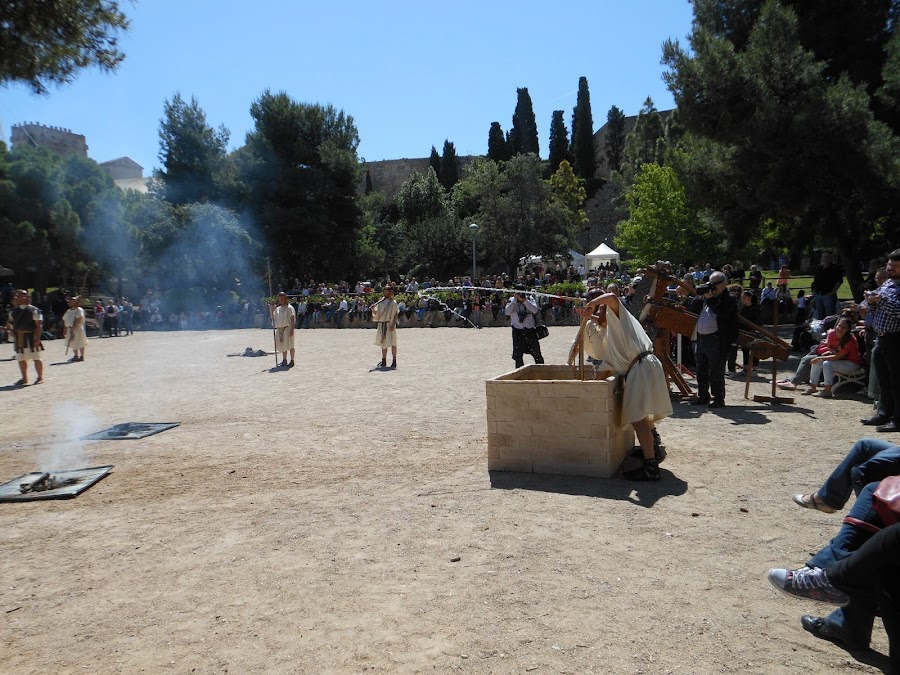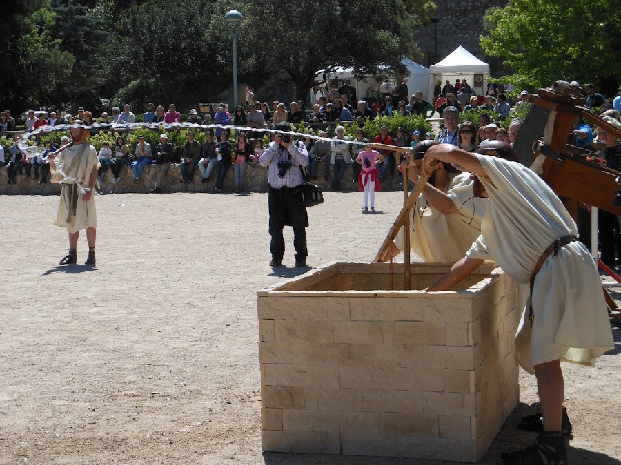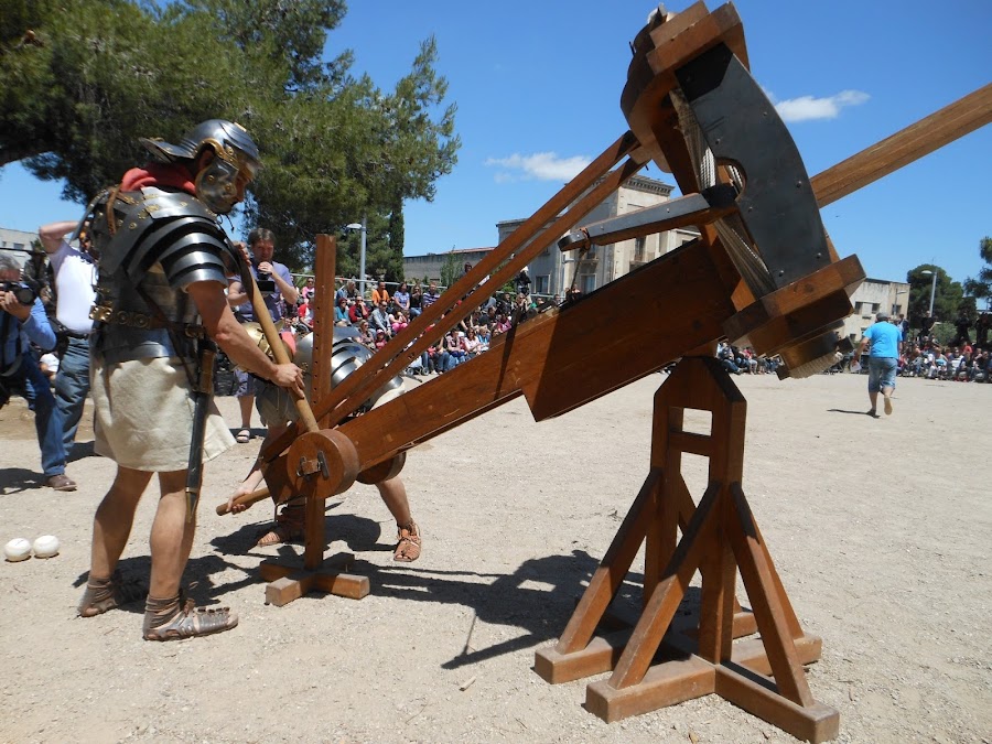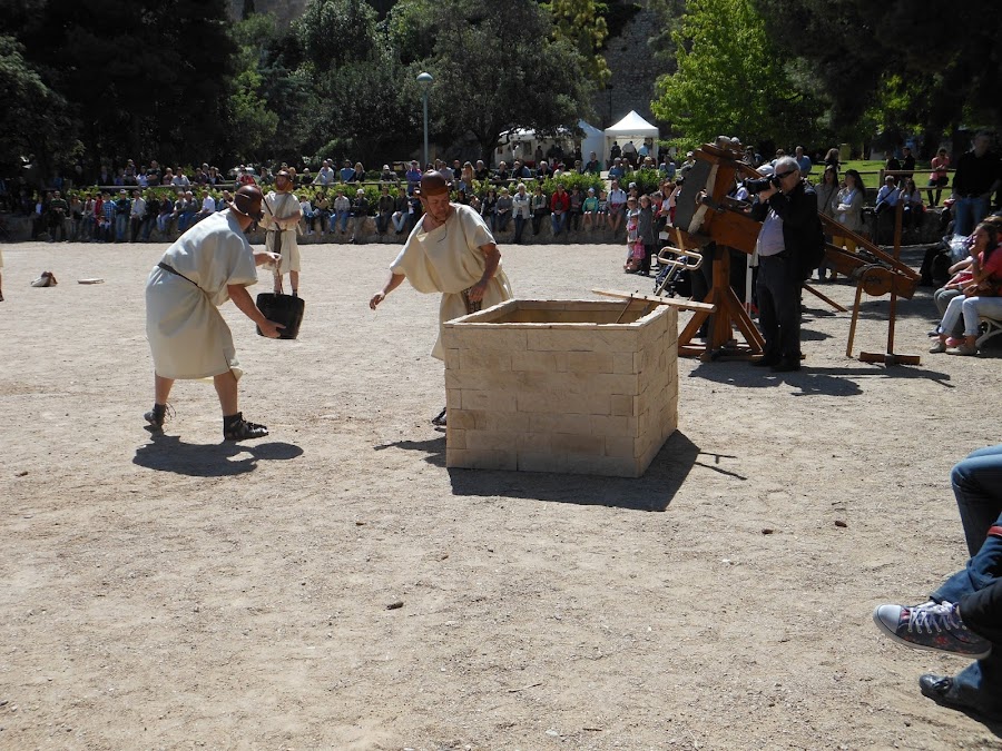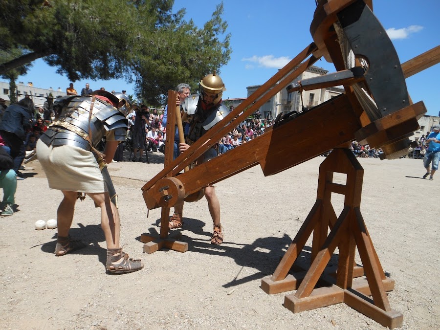 Demostración de las catapultas (con bolas de papel maché, claro)