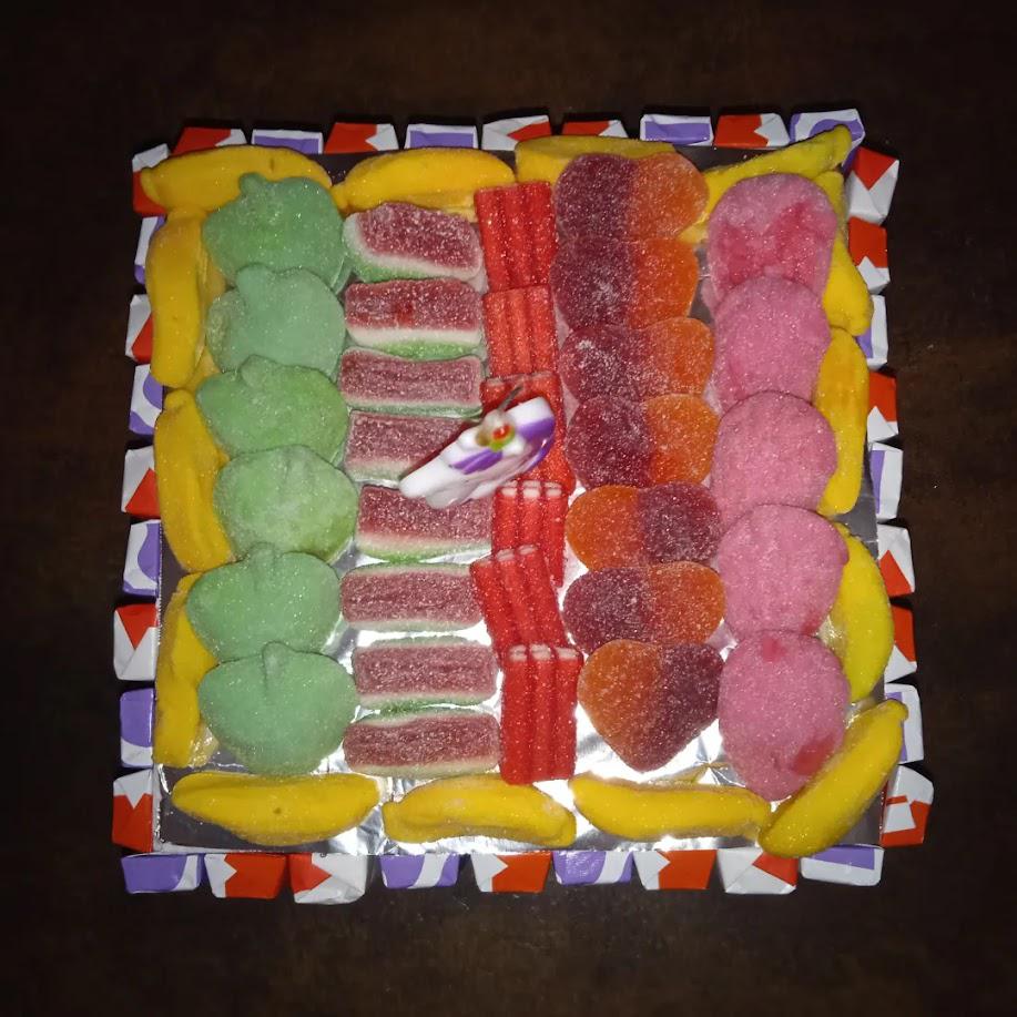 Como dulces compré varias tabletas de barritas de chocolate diferentes y un taper de chuches de las que venden en el supermercado, pero puede valer cualquiera si os gustan otras.