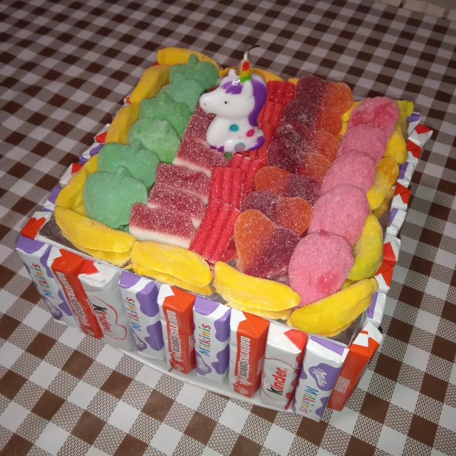 Para terminar le puse una vela de unicornio encima y a mi gusto se quedó super bien y no veas lo ricas que estaban las chuches!!