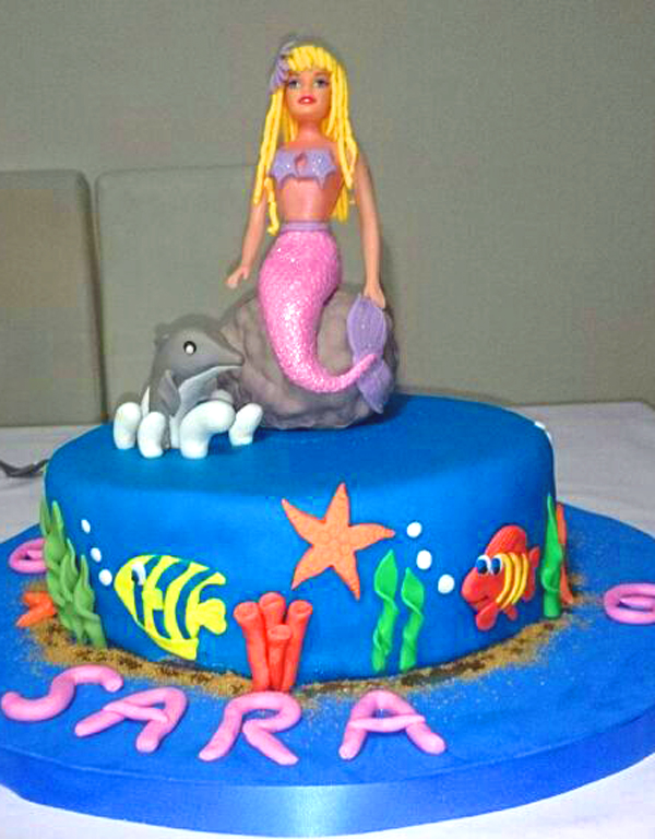 Una vez cubierta, la decoráis como más os guste, en nuestro caso, hicimos la muñequita, el tubo de pastillas y algunas cápsulas, también le pusimos la edad haciendo dos números con fondant.