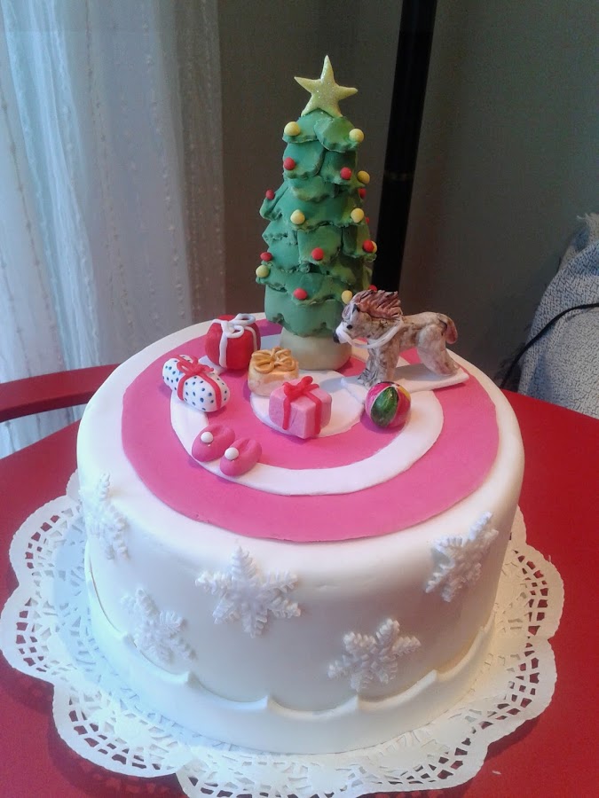 La base para hacer una buena tarta de Fondant, es que por dentro esté muy rica, dulce y jugosa, también es verdad que los adornos, que es lo primero que se ve, tienen que ser simpáticos, graciosos y que tengan relación con algún aspecto de la forma de ser o los gustos de la persona a la que se la vamos a regalar, en este caso la hicimos para una Licenciada en Farmacia que cumplía treinta años, así que hicimos una muñequita con algún parecido, como el color y el largo del pelo, y la bata blanca, también le pintamos en un bolsillo el símbolo de la Farmacia, para terminar de adornarla le pusimos un tubo de pastillas hecho con Fondant, por supuesto, unas cápsulas también de fondant y unos Lacasitos, que hacen muy bien de medicamentos y además a ella le gustan mucho, por dentro es un bizcocho relleno de tres chocolates, blanco, con leche y negro, quedó tan buena, que nos felicitaron por el trabajo.
