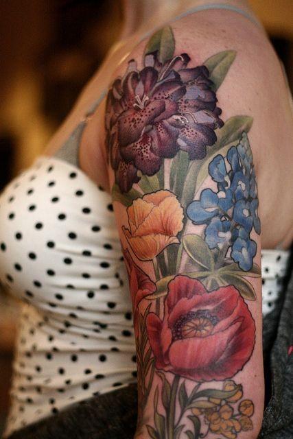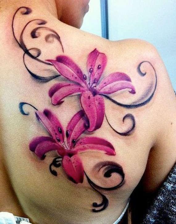 Los tatuajes de flores para mujeres son uno de los diseños más populares. Con los 10000 tipos de flores diferentes que existen en la naturaleza tienes variedad más que suficiente para elegir. Los tipos de flores más populares para tatuar suelen ser las rosas, además dependiendo del color representan un sentimiento u otro: las rosas rojas representan el amor y la pasión, las blancas la pureza, las amarillas la alegría y las negras la muerte. Otras flores muy populares en los tatuajes son las margaritas, los tulipanes, el loto, las azucenas y los lirios. Estos diseños suelen hacerse en color y quedan bien en cualquier tamaño y en cualquier parte del cuerpo.