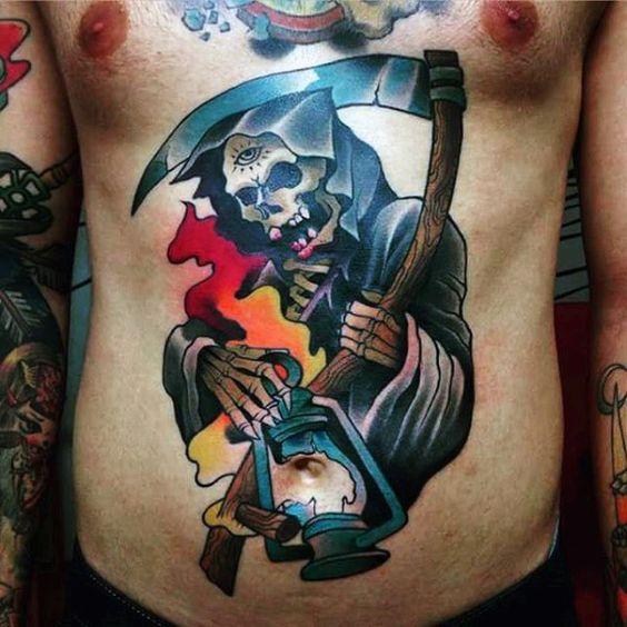 Los hombres generalmente trabajan duro en los gimnasios para conseguir un abdomen plano y tonificado. Un tatuaje en esta zona es una excelente manera de mostrar un cuerpo trabajado al mismo tiempo que una oportunidad de añadir estilo y masculinidad al cuerpo.