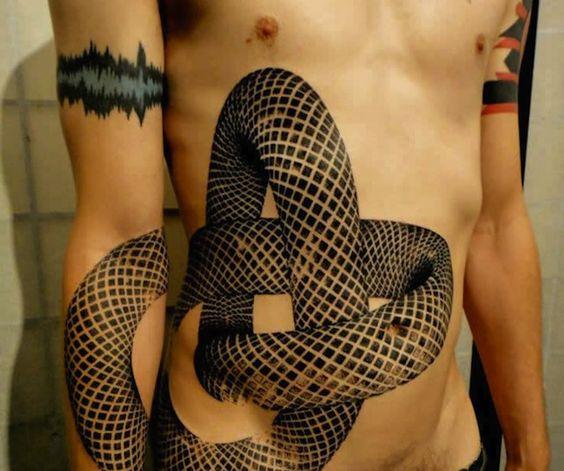 La zona alta de estómago por encima del ombligo es muy solicitada entre los hombres para realizarse increíbles tatuajes en el abdomen.
