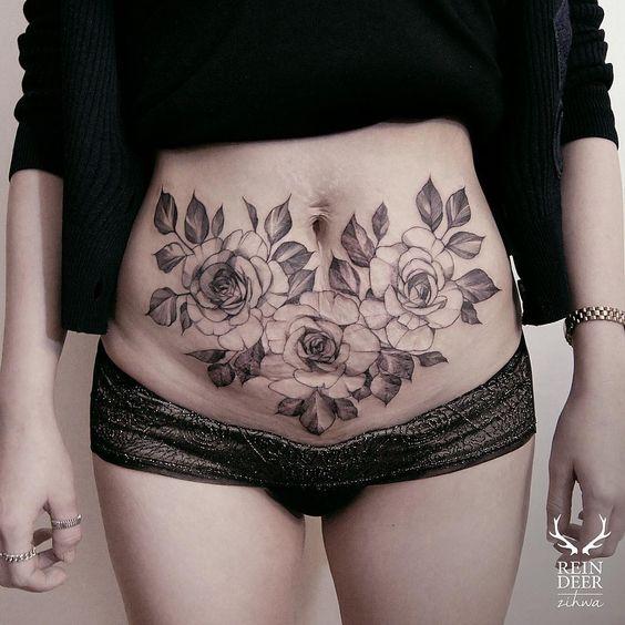 Por su parte los tatuajes en el abdomen para tapar cicatrices y estrías son los más solicitados por el género femenino, a fin de renovar su aspecto y ocultas las imperfecciones de su torso.
