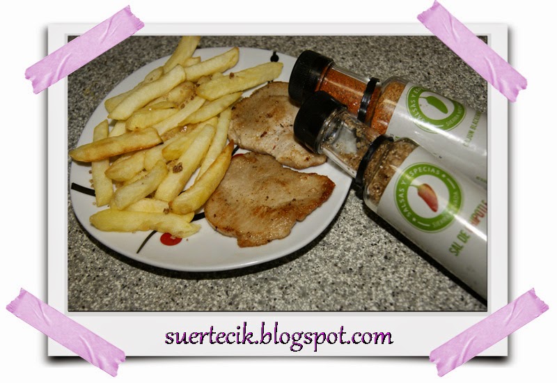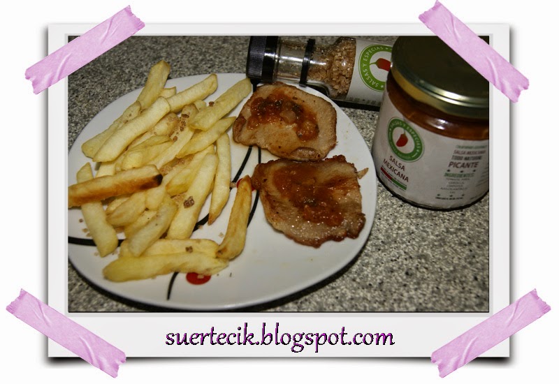 Con todas estas salsas he preparado varios platos combinados, os cuento desde ya que en todos ellos están en común las patatas fritas con Sal de Chipotle y me anticipo a contaros que me ha gustado mucho su sabor ahumado y con el toque justo de picante.