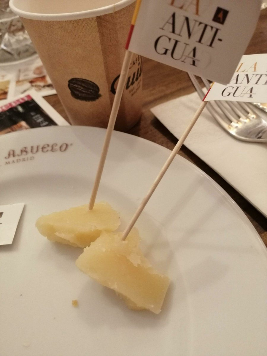 Los quesos los ponía la Quesería La Antigua. Unos sensacionales quesos de oveja. Desde el más suave, hasta un curado que nada tiene que envidiar a los mejores parmesanos. Su queso con trufa, tierno y con trufa de verdad (lo que no es muy habitual) es una delicia que te deja ese aroma flotando por la boca. Y el broche fue una torta, madurada con cardo mariano, que es un placer absoluto.
