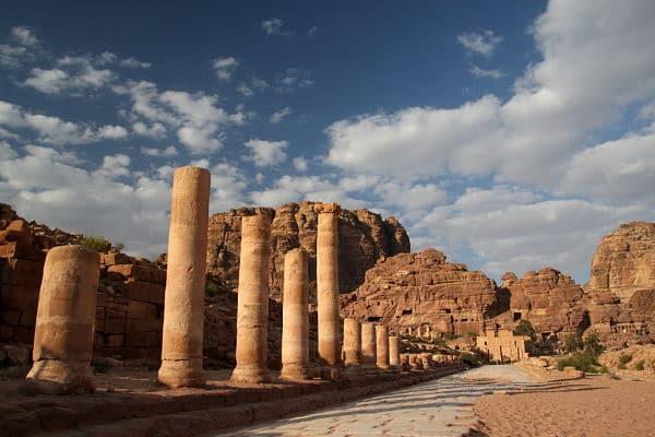 Bajando desde el Teatro, esta calle marca el centro de la ciudad de Petra. Fue construida alrededor del año 106 DC y sigue el patrón romano estándar de un decumanus este-oeste. Pero sin el cardo maximus normal (eje norte-sur). Varias columnas de piedra arenisca revestidas de mármol bordeaban originalmente la calzada de 6 metros de ancho. Y los pórticos cubiertos daban acceso a las tiendas.