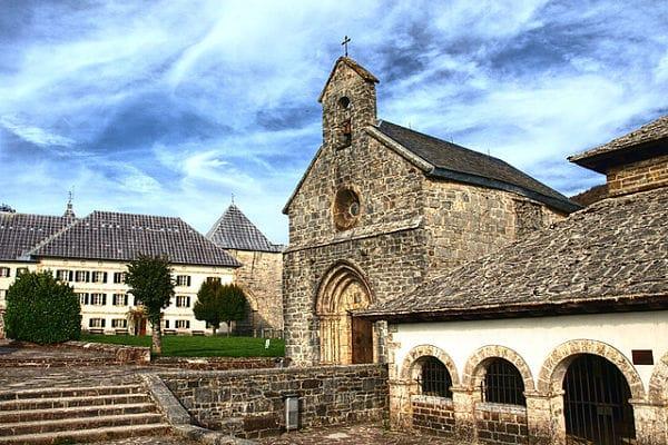 La religión ha desempeñado un papel importante en la historia y la sociedad de Navarra. Y en ninguna parte esto es más visible que en el monasterio de Leyre del siglo IX. Tiene una impresionante vista de la montaña a 50 km al este de Pamplona. El edificio es conocido por sus muchos rasgos románicos (incluyendo su cripta bien preservada del siglo XI). Así como el lugar de descanso de los reyes de Navarra. Los visitantes también tienen la oportunidad de asistir a una misa con canto gregoriano, cortesía del pequeño número de monjes que todavía viven en el monasterio adyacente. También hay un hotel de 2 estrellas e instalaciones para montar a caballo.