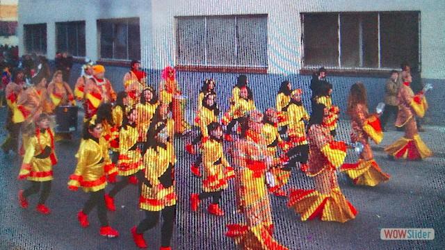He saltado como una loca, gritado hasta quedarme afónica, me he caído y levantado de un salto, me he disfrazado, he bailado samba hasta que me han dolido los pies, he tocado de entre los instrumentos posibles, elTamborín, el Triángulo, las Sonajas, el Güiro de metal, el Agogó, el Rocar, la Ganza, el Reco-Reco, la Cuica, he enseñado a los niños y mayores a bailar, he caminado desfilando sobre la nieve, lloviendo, a pleno sol, con una temperatura a punto del desmayo, tanto por frío como por calor, me han tirado cubos de agua desde las terrazas para refrescarme en el verano (lo cual siempre he agradecido), he brindado por las actuaciones, la gente, la fiesta, los amigos, he llorado de alegría y de ilusión, de tener recuerdos, de tristeza y celebración.