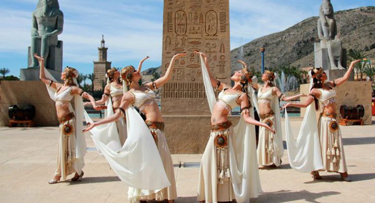 Mientras caminas por sus calles podrás ver como Cleopatra muestra su poder como Faraona de Egipto ó como el Faraón ofrece sus ofrendas a los Dioses.
