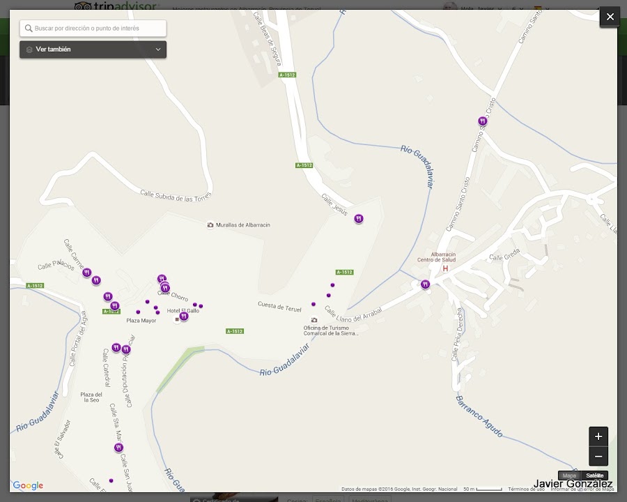 Si haces click en el mapa podrá ver la lista de los mejores restaurantes de Albarracín según Tripadvisor.